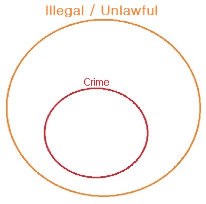 Not all illegal/unlawful acts are crimes. But, all crimes are illegal/unlawful. In Korea, a “crime” can be spotted by the punishment outlined for a “violation.” If the specific punishment outlined is a “criminal punishment,” this makes the “violation” a “crime.” Simple.