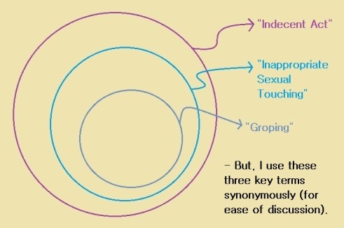 Nevertheless, an overwhelming majority of “indecent acts” are essentially groping or inappropriate sexual touching. When you hear about an “indecent act” in the news, it’s (almost) safe to assume they are referring to groping or inappropriate sexual touching. This is why I am not averse to using the three terms synonymously.