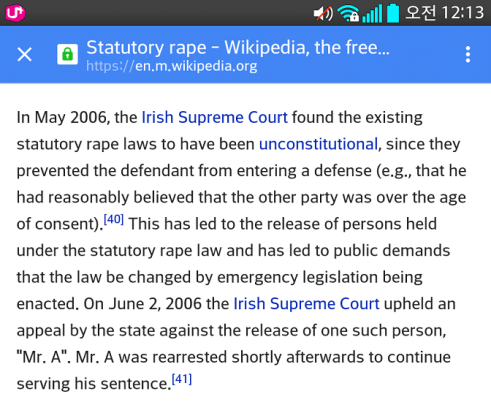 True or False: “In South Korea, having consensual sex with a 12-year-old is always a crime.” A: False.