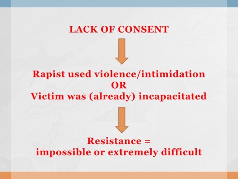 Normally, “lack of consent” is proven by showing that: the rapist used violence/intimidation (as a means) or the victim was already incapacitated (and the rapist was able to take advantage of that).