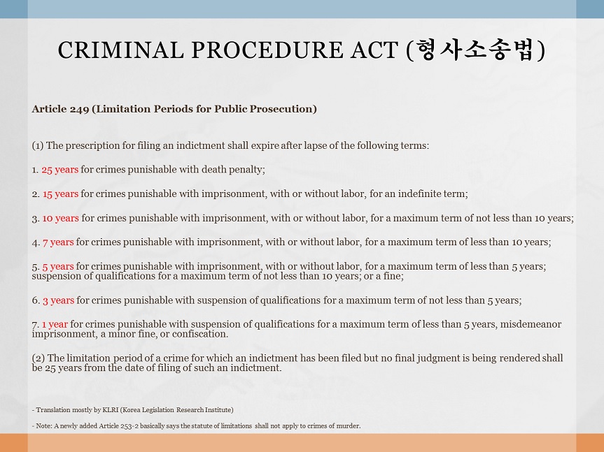 How to Find Out the Statute of Limitations (for a Crime under Korean Law)