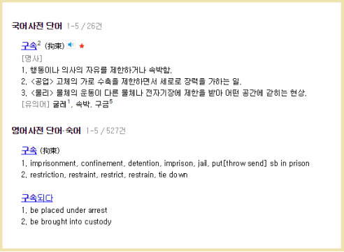 DID YOU KNOW? There are actually 2 types of 구속 warrants. One is to force the person to appear (i.e., 구인영장); the other is to confine/detain such a person (i.e., 구금영장). The latter warrant includes the former, but not the other way around.